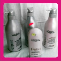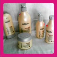 Shampoo, acondicionador y tratamiento intensivo para cabello frágil.